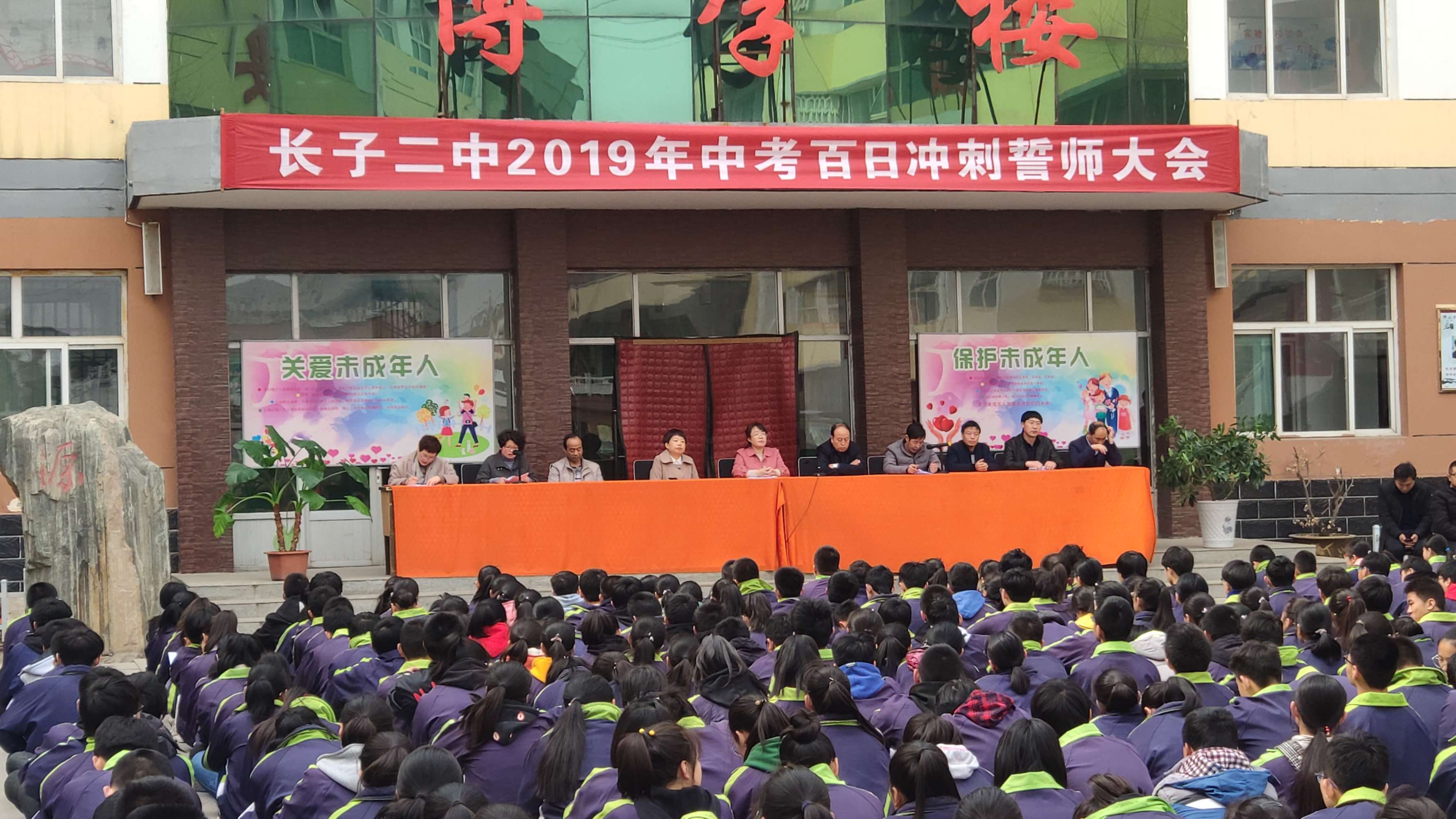 这次大会,使初三年级全体师生明确了奋斗目标,增强了斗志,鼓舞了士气,点燃了激情。慷慨激昂的誓言,坚硬有力的拳头,都在表明长子二中全体师生定会用信心与行动搏取2019年中考的全面丰收!