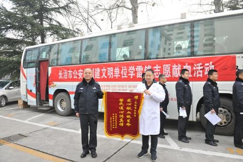 献血结束后,医务人员向我局献上锦旗。