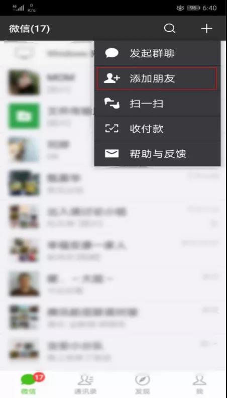 1、微信右上角选择“添加朋友”