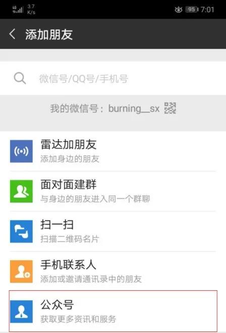 2、选择点击“公众号”