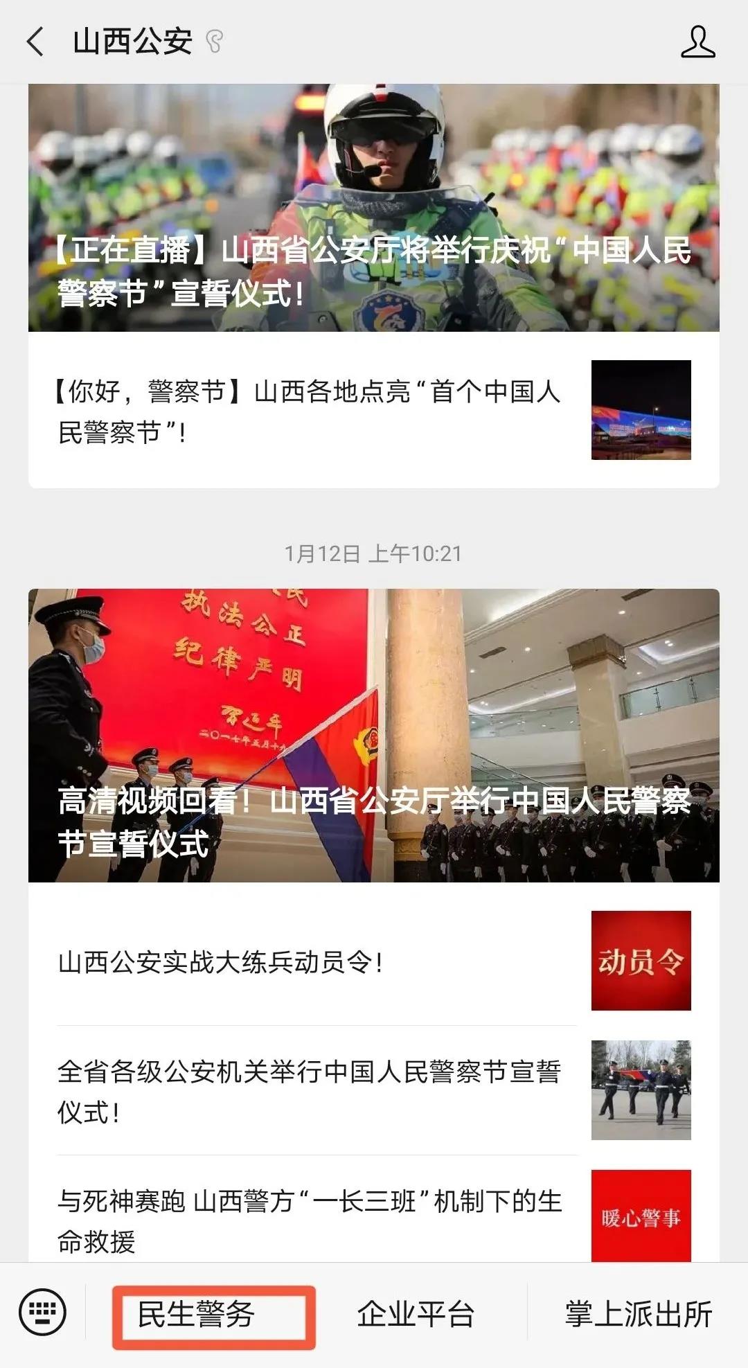 5、选择左下角“民生警务”进入