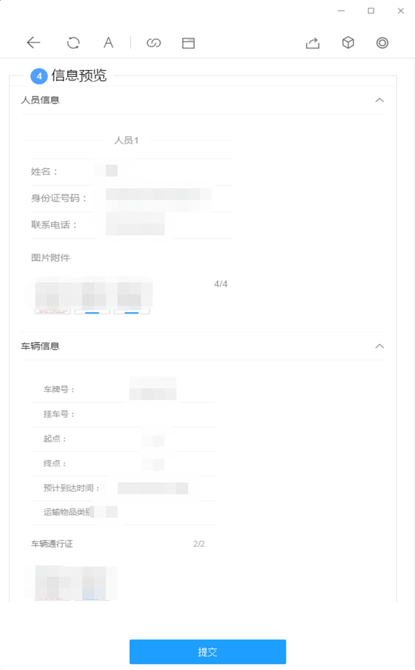 12、再次核对所填信息后点击“提交”,待系统审核后即可生成通行码