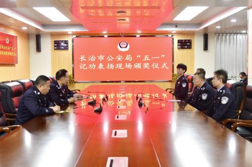 在“五一”国际劳动节到来之际,长治市劳动竞赛委员会对我市在经济社会发展和疫情防控工作中作出突出贡献的先进集体和个人进行了记功表彰。其中,我局食药侦支队支队长程卫东同志荣记“长治市一等功”、警务保障处国资科科长秦柠同志荣记“长治市三等功”、巡特警支队一大队大队长王波同志荣记“疫情防控一等功”、指挥中心三级技术主管赵鹏凯同志荣记“疫情防控二等功”。